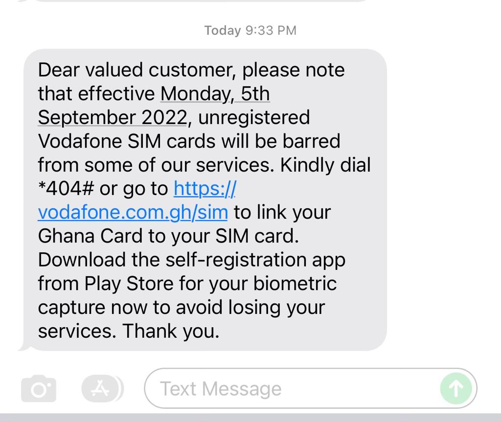 - Subscribers with uncompleted registration, that is those who linked their Ghana Cards to their SIM cards via *404# but have not proceeded to have their biodata captured will also face similar disruption in service from Wednesday September 7, 2022.
