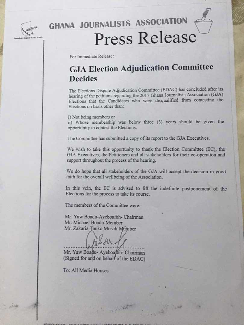 “We wish to take this opportunity to thank the Election Committee (EC), the GJA Executives, the petitioners and all stakeholders for their cooperation and support throughout the process of the