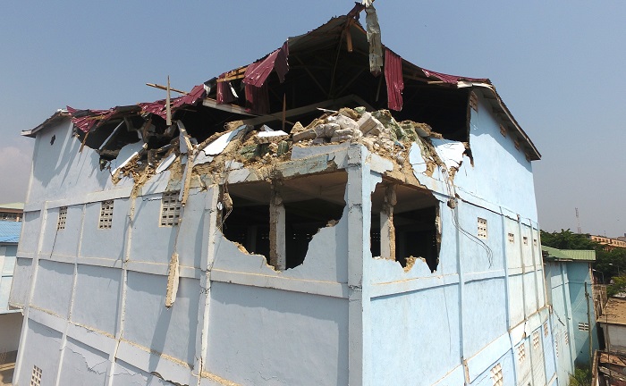 The controlled demolition exercise was sanctioned by the Mayor of Accra, Mr Alfred Oko Vanderpuye, after residents raised an alarm about the imminent collapse of the building.
