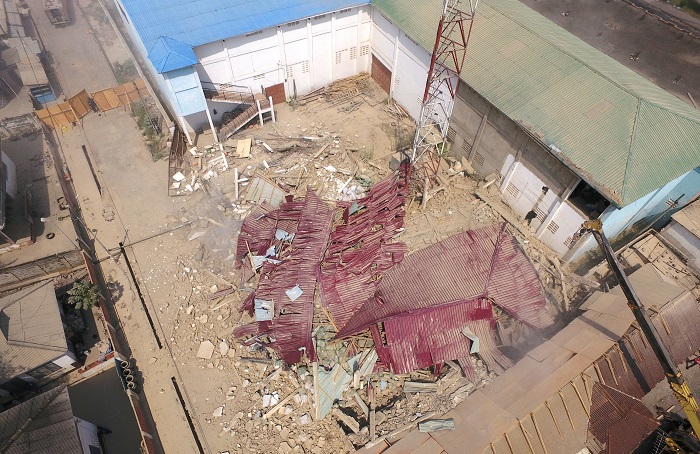 The ruins of the demolished warehouse