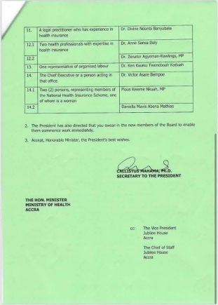 Attached below is an announcement by the NHIS Ghana on the members who were sworn in on Tuesday including Anne Sansa Dally
