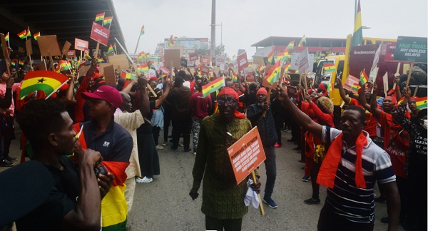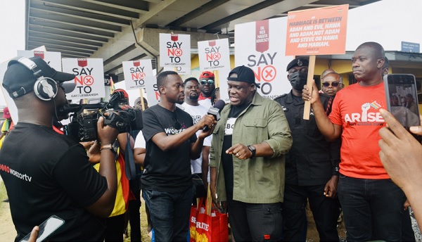 The protesters, attired in black and red, held placards some of which read: "You were not produced out of homosexuality", "Faith and family are protected by law, not LGBTQ+", "Pro family, Pro-justice", "Justice for 90% of Ghanaians". "Article 1(10) upholds Ghanaian Sovereignty, No LGBTQ+", among others.
