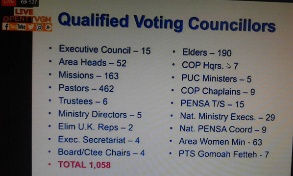 As part of the church’s process to elect a new chairman, the Electoral College gave Apostle Nyamekye 147 ‘Yes’ votes as against four 'No' votes out of the total 151.