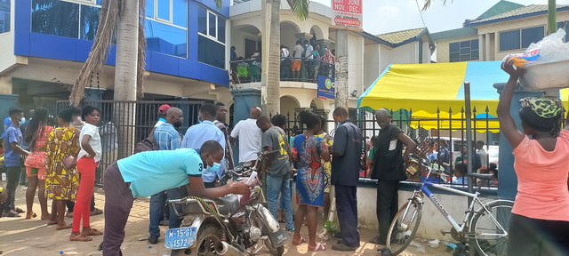 Except the early birds who were fortunate to be seated, the majority were huddled up, coronavirus or not. Some said they had been trooping to the centre from as early as 4am. And it is an everyday affair – Mondays to Fridays.