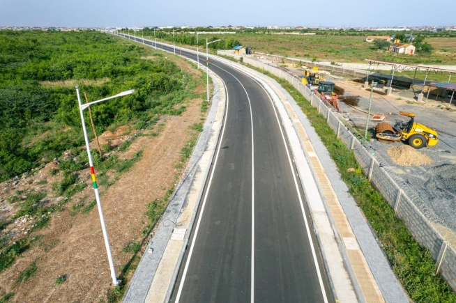 The dual carriageway, which was inaugurated Monday [August 26, 2024], includes service lanes on both sides, a 1.60 km Stadium Access Road, Tema Motorway slip roads, walkways, cycling lanes and lay-bys to enhance safety and convenience for all road users.