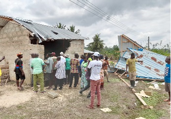 The MP, who had gone to provide bags of cement, packets of roofing sheets and an undisclosed amount of money, was taken round the affected areas by the officials of the National Disaster Management Organisation (NADMO), the Assembly member for Assin Anhwiasu, James Coffie, and the chiefs and elders on Monday, February 21, 2022.