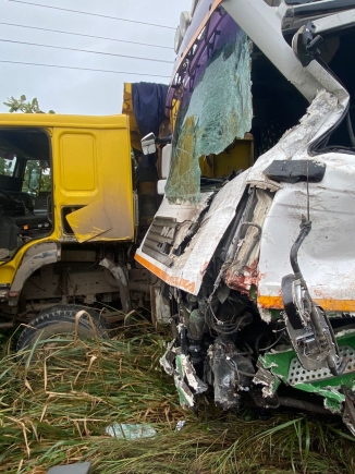 The vehicles involved in the accident are a Mercedes Sprinter mini bus, a Man Diesel articulated truck and a Howo tipper truck with registration numbers GR 6081-18, GW 5416-24 and GB 1592-22 respectively.
