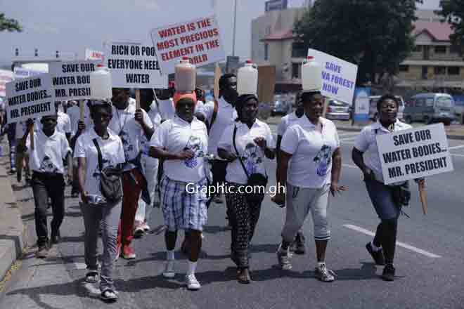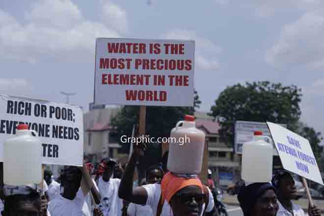 The protestors carried placards, some of which read: ‘Water is the most precious element in the world', 'Rich or poor, everyone needs water'; 'Save Atiwa Forest now'; 'Save water it doesn't grow on trees'; 'Save water bodies Mr President'; 'When you save water, it saves you’, ‘No Atiwa Forest, no Ayensu’ and ‘EPA, protect our water bodies’.