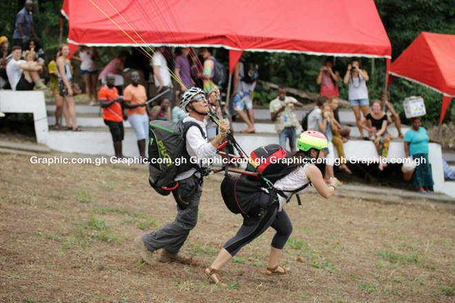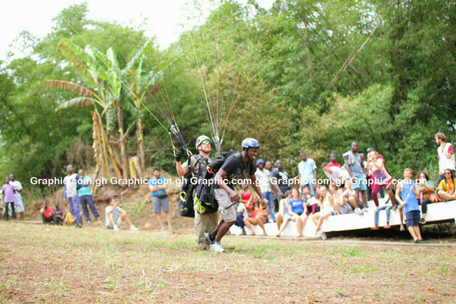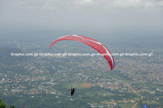 Two Ghanaian pilots who took part in this year's annual paragliding festival at Odweanoma Mountains in the Eastern region during the Easter festivity, put up a tremendous display to earn applause from both patrons and their colleagues.