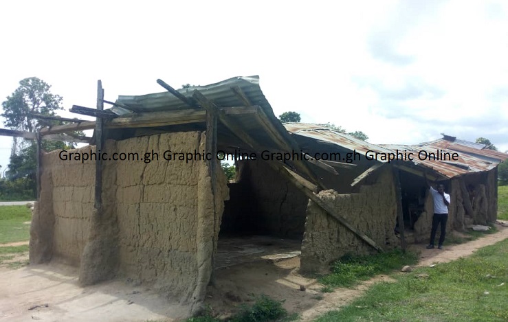 Located on the Wenchi-Buoku Highway,one of the old classroom blocks in the school,built with clay, has developed deep cracks,with parts of the roof of the structure ripped off,putting the lives of about 90 junior high school (JHS) students and teachers at risk.