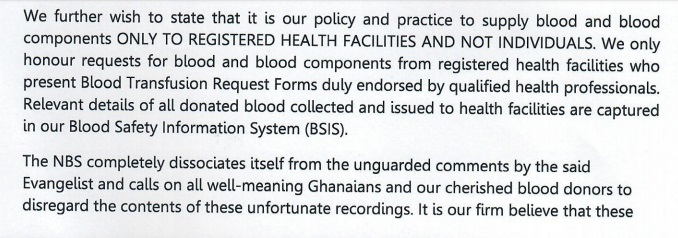 The National Blood Service (NBS), Ghana has denied assertions by a preacher that blood donated during community blood donations organised by the Despite Group of Companies are used for rituals by Mr Osei Kwame Despite.
