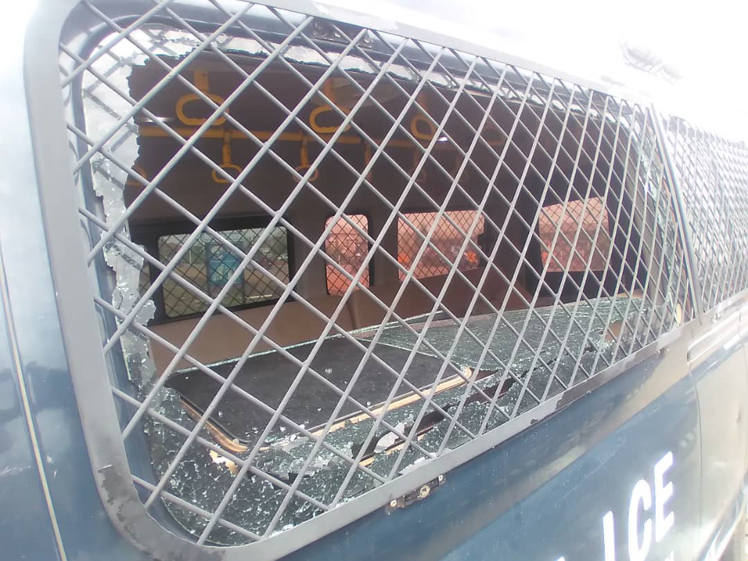 Personnel of the police service were subsequently called in to disperse them and control the situation but they turned their anger on the police and pelted them with stones, leading to damage to the riot control van.