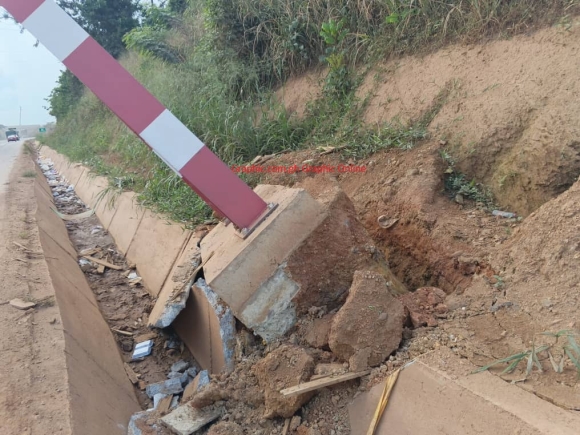 A height control barrier designed for vehicles up to 4.5 metres has collapsed along the Asamang Tamfoe–Ankaasi stretch of the Accra–Kumasi N6 highway, posing a serious risk to motorists.