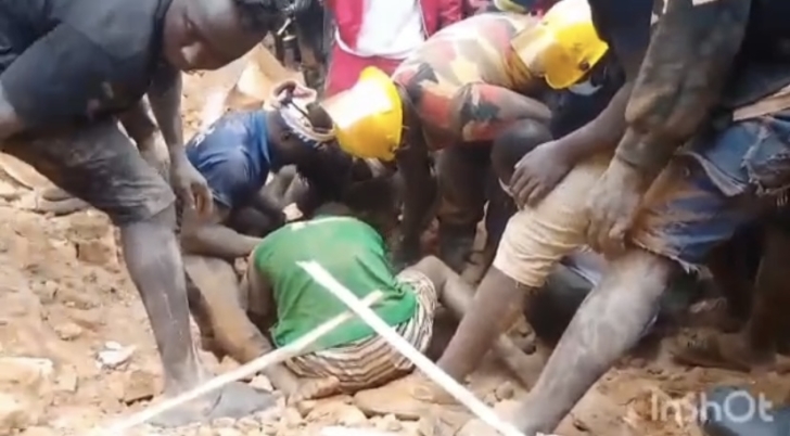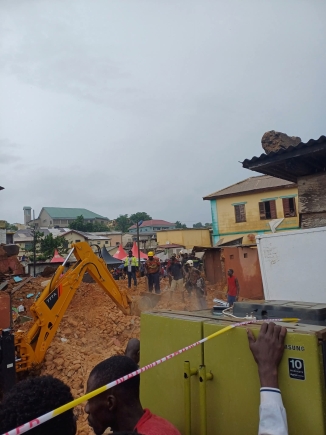 Personnel from the Ghana National Fire Service (GNFS), the police and the National Disaster Management Organisation (NADMO) responded to the distress call and were at the scene to assist with the search for the trapped persons.