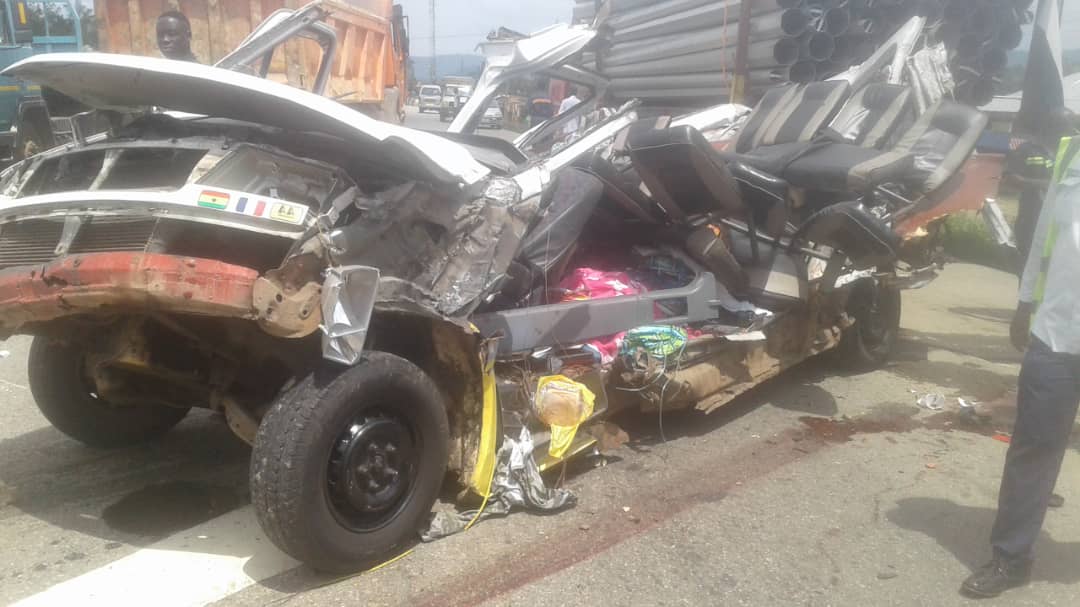 The deceased were on board a Sprinter bus with registration number GX 3787 – 13. They were travelling from Accra towards the Ashanti Region and their vehicle was hit from behind by a tipper truck, which crashed them against a DAF cargo truck which was ahead.