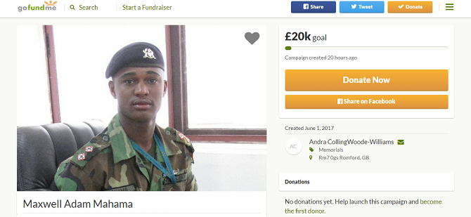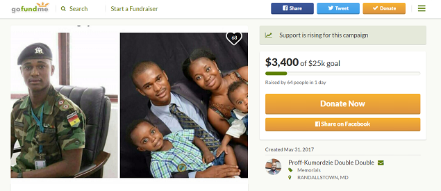A number of GoFundMe campaigns have been created by unknown persons attempting to solicit for funds in the name of the bereaved family of Captain Maxwell Adam Mahama.