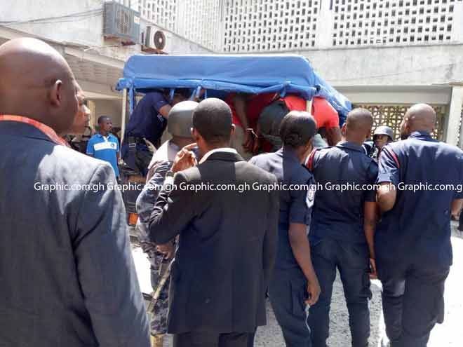 They were taken to the court in handcuffs by armed police from the Central Regional Police Headquarters.