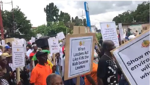 The protest saw the worshippers carrying placards with messages calling for an immediate end to illegal mining activities.
