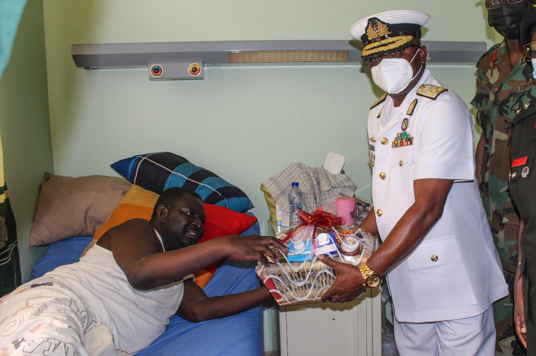 The Chief of Defence Staff (CDS), Vice Admiral Seth Amoama on Friday marked his birthday celebration with a visit to some personnel of the Ghana Armed Forces who had sustained various forms of injury or suffered illness in line of duty and were currently on admission at the 37 Military Hospital in Accra.