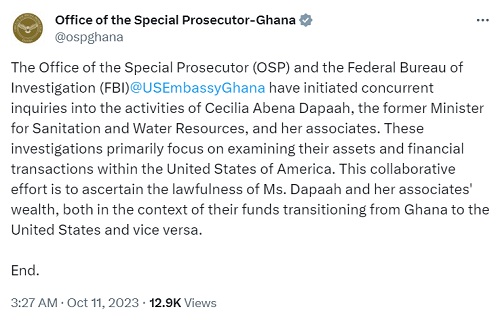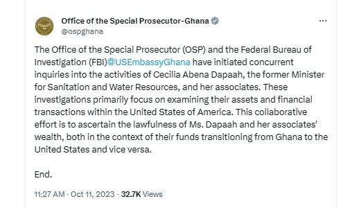— Office of the Special Prosecutor-Ghana (@ospghana) October 11, 2023