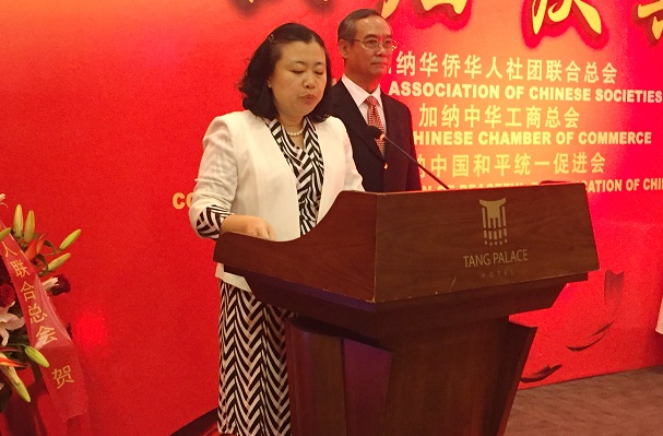 Chinese Ambassador to Ghana Madam Sun Baohong speaking at the event .