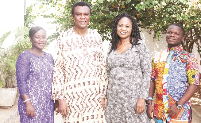 Apostle Jackson with his wife, Mrs Diana Owusu Jackson (2nd right) and their two children, Stephen Owusu Jackson Jnr (right) and Sarah Maame Yaa Jackson.