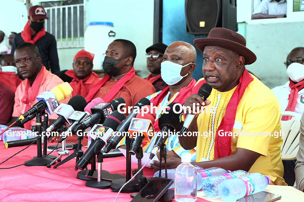 PHOTO: Nana Nimako Bresiamah, National Chairman, GPRTU, speaking at the press conference. On his left is Mr Godfred Abulbire, General Secretary, GPRTU. Picture by Maxwell Ocloo