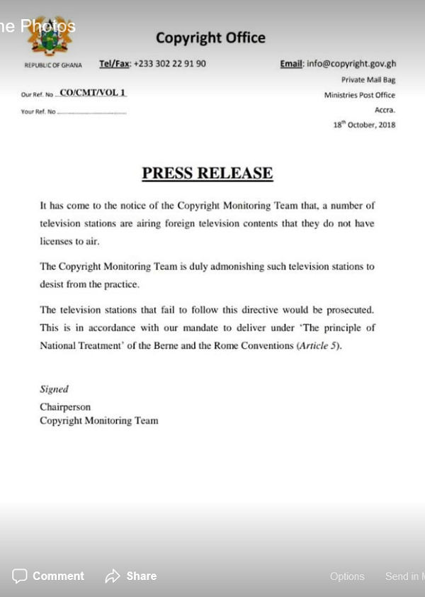 The copyright monitory team has warned television stations to desist from airing contents that they do not have license to air.