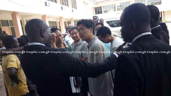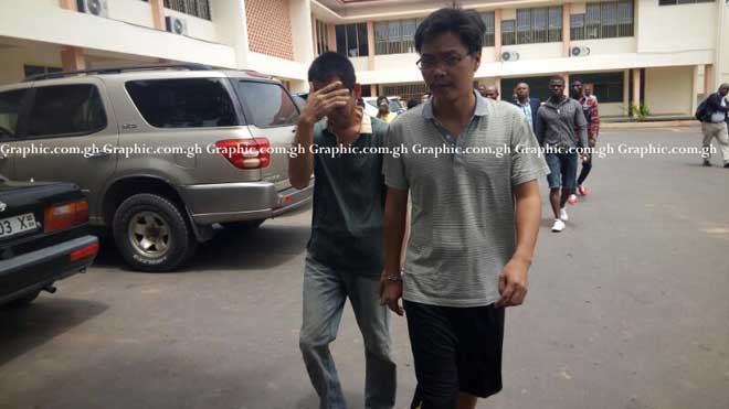 The accused, who are to reappear on April 24, 2017 are Dong Cheng, 30; Huang Juan, 51; Ning Guorui, 42; Ying Biquiang, 46; and Li Zilong, 44, all Chinese nationals. Their Ghanaian accomplices are Eric Owusu, 28; Kwabena Adjei, 50; Nana Adu, 42; Kwasi Owusu, 28; and Kofi Darko, 21.