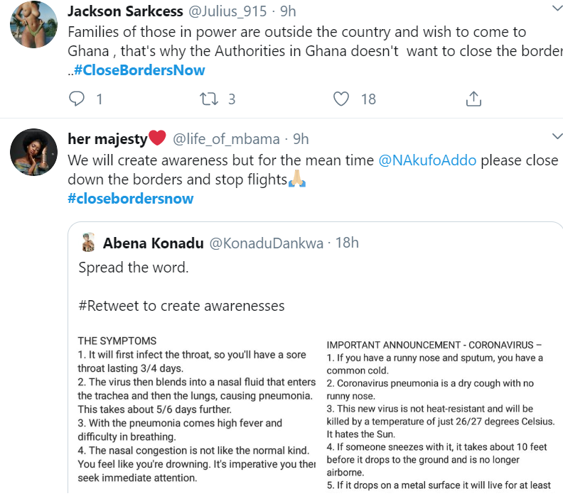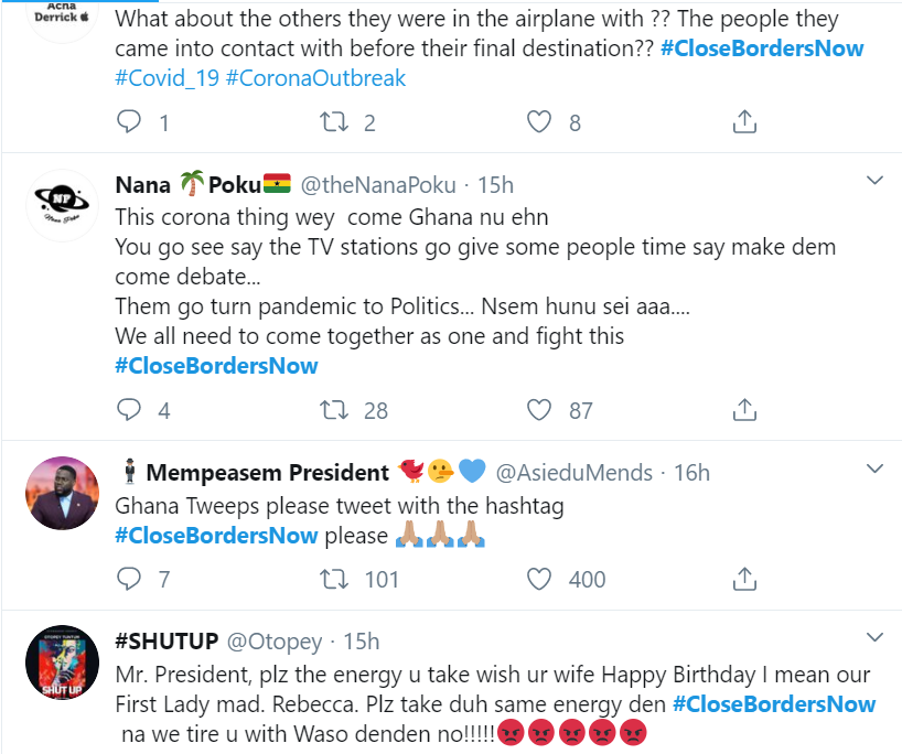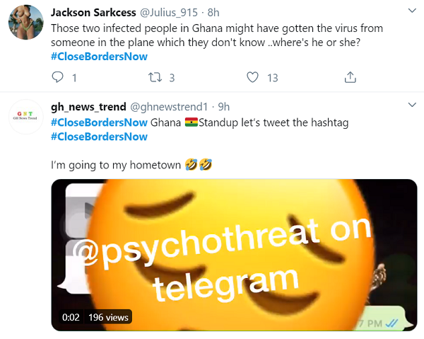 Meanwhile, some Ghanaians on micro-blog Twitter have urged the government to close the national borders after two cases were confirmed on Thursday in the country.