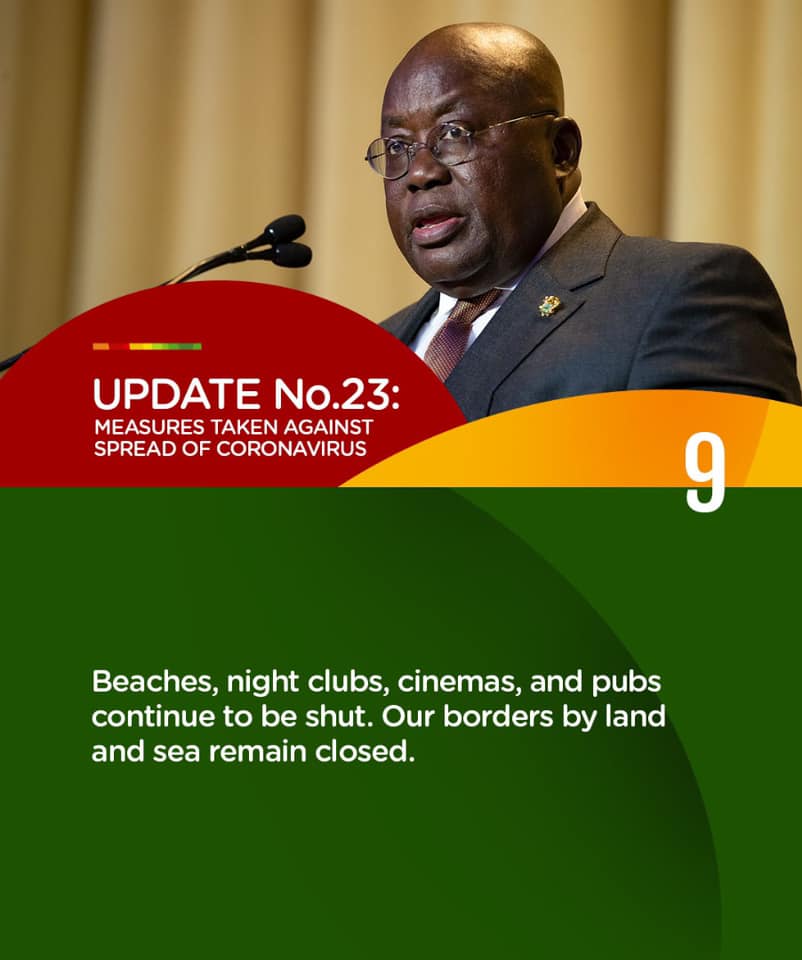 President Nana Addo Dankwa Akufo-Addo made this known in his 23rd national update on the coronavirus disease Sunday night.