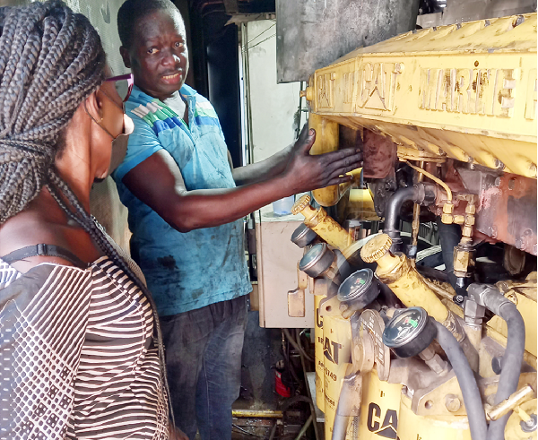 The engineer of the Adawso Ekye-Amanfrom ferry station, speaking to Ms Rosalind K. Amoh, Deputy News Editor, Daily Graphic