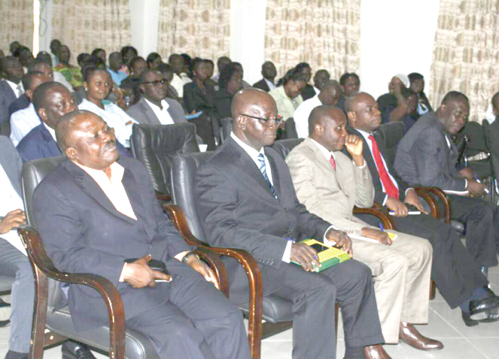 • The Controller and Accountant General, Mr Eugene Ofosuhene (2nd left), at the sensitisation seminar. Those with him include Mr Samuel Ayeetey Aryee (left), Deputy Controller, Mr Kwasi Owusu