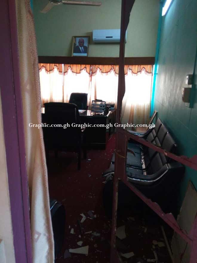 Some irate members of the New Patriotic Party (NPP) who call themselves Delta Force on Friday stormed the offices of the Ashanti Regional Security Coordinator in Kumasi, smashed windows and doors and threw him out of his office.