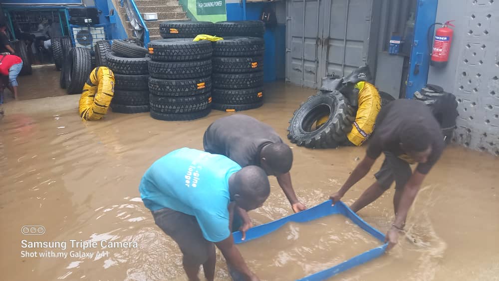 Spare parts and tyre dealers along the Abossey Okai stretch of road where the Abossey Okai Interchange is currently under construction are counting their losses after last Friday’s torrential rains that fell in some parts of Accra.
