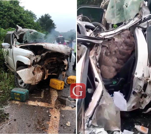“On reaching a section of the road at Akim Fisher on the Accra-Kumasi Highway, a Man Diesel Articulated truck [with registration number] AS 4229-X from Kumasi direction veered off its lane and crashed head-on with the Nissan Patrol 4×4.