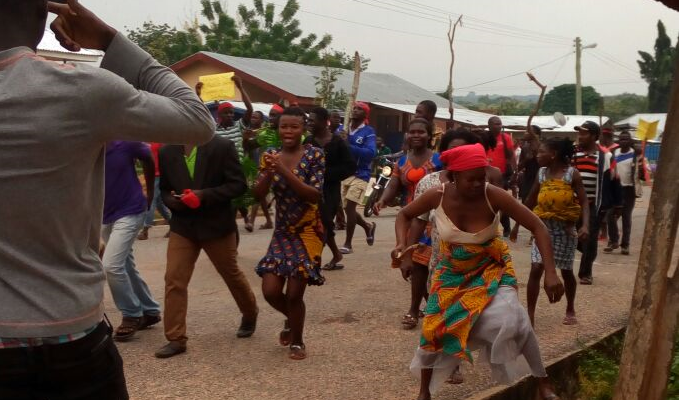 It took a police reinforcement of over 20 men from Nkawkaw to bring the situation under control.