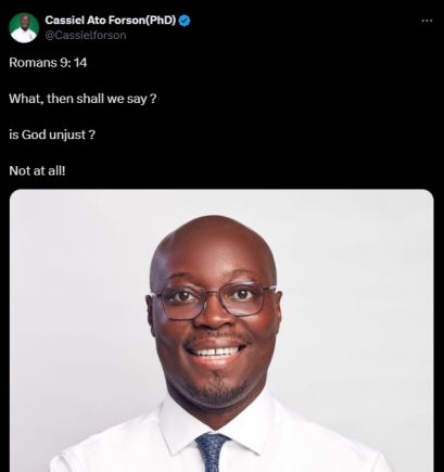 Dr. Forson who declined comment to pressmen at the court premises after the ruling on Tuesday morning, rather went on ssocial media to share a Bible verse from Romans 9:14, stating, "What, then, shall we say? Is God unjust? Not at all!"