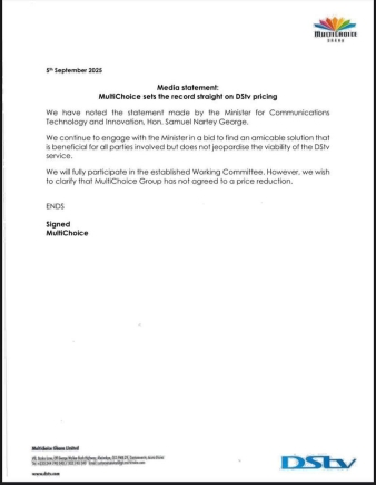 The Minister of Communication, Digital Technology and Innovations, Mr Samuel Nartey George, who announced the decision in Accra on Friday [September 5, 2025], explained that MultiChoice had finally signalled its readiness to engage in a consultative process with the ministry and the National Communications Authority (NCA).
