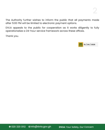 The DVLA encouraged the public to take advantage of the extended hours to transact business directly at its offices, noting that the measure is also intended to curb the activities of middlemen and improve transparency in service delivery.