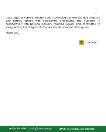 The DVLA reaffirmed its commitment, alongside National Security, to safeguarding the integrity of Ghana’s vehicle administration system and preventing further abuses within the sector.