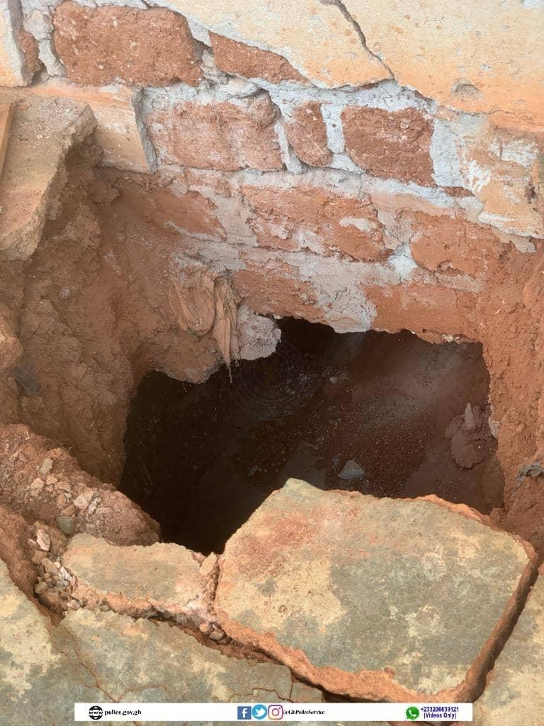 Four other deep dug-out pits have also been uncovered by the Police in other houses in the same vicinity. Investigation has further revealed that the chief, his brother and six other suspects who are on the run are the main people behind the illegal mining activities.