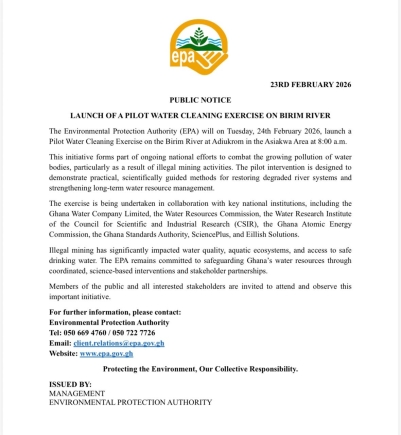In a public notice, the EPA said the initiative forms part of broader national measures to confront the increasing pollution of Ghana’s water resources.