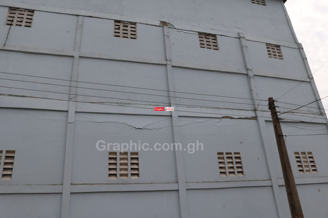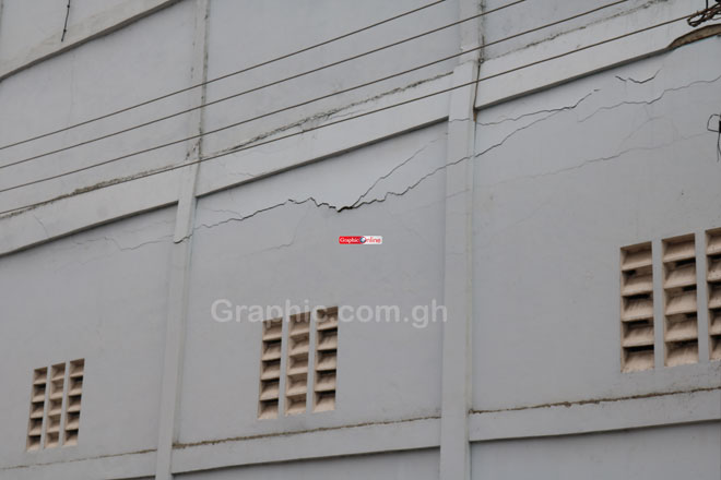 An 80-year-old resident of one of the neighbouring houses, Madam Georgina Agyare, told the Daily Graphic that some of the residents abandoned their homes two weeks ago when they heard a loud sound in the building about 7 p.m.