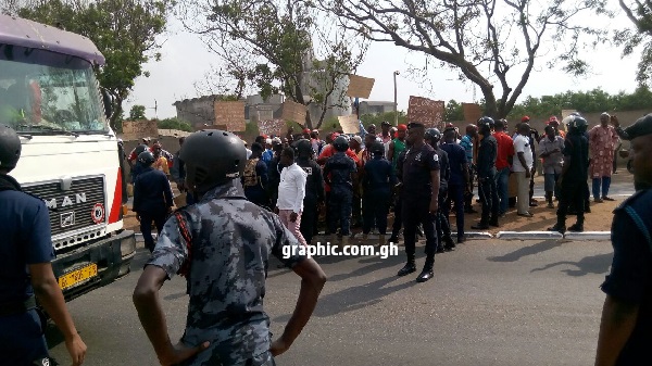 Graphic Online's Benjamin Xornam Glover reports that the demonstrators began massing up at the GPHA headquarters on Thursday morning but were being prevented by a team of Police personnel on the ground from storming the GPHA offices.