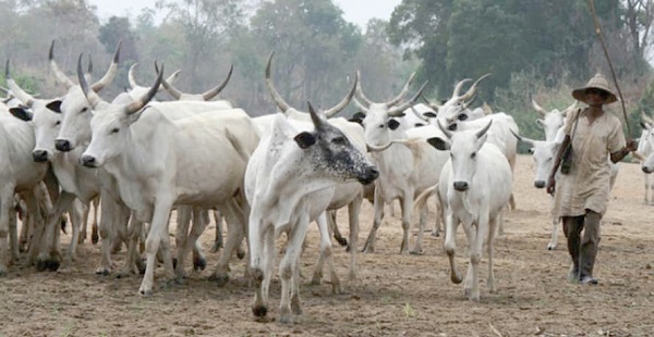 A Fulbe herdsman herding cattle in the bush