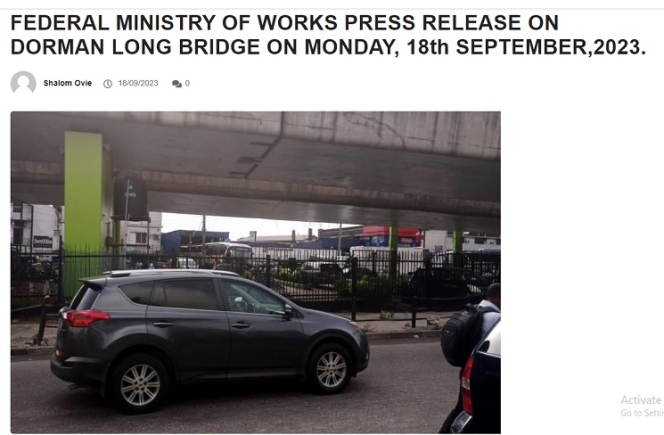Also, a Lagos-based website, lagostelevision on September 18, 2023 reported on the state of the bridge with the headline “FEDERAL MINISTRY OF WORKS PRESS RELEASE ON DORMAN LONG BRIDGE.”