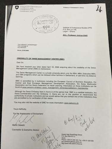 In a related development, another member of academia mentioned in association with the Swiss Management Centre, Dr. John Gatsi of the University of Cape Coast, has also refuted the assertions that SMC was unaccredited.
