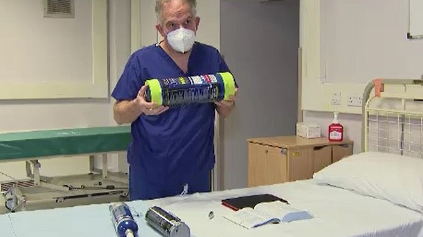 Dr David Nicholl with some of the newer, larger nitrous oxide canisters popular with addicts