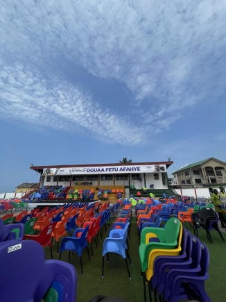 Cape Coast has been painted with colour and royalty. From a bird's view is a sea of chiefly umbrellas and regal royalty at the Victoria Park. Virtually all Ghana is in Cape Coast.
